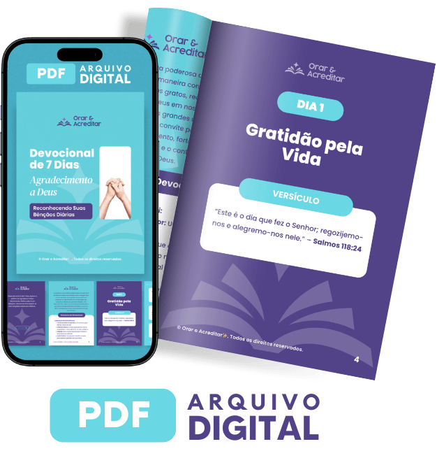 Quer sentir a presença de Deus todos os dias? Com nosso devocional de 7 dias, “Agradecimento a Deus – Reconhecendo Suas Bênçãos Diárias,” você encontrará versículos, reflexões e orações diárias que vão renovar sua fé e trazer paz ao seu coração. Descubra como a prática da gratidão pode transformar sua vida em apenas uma semana!